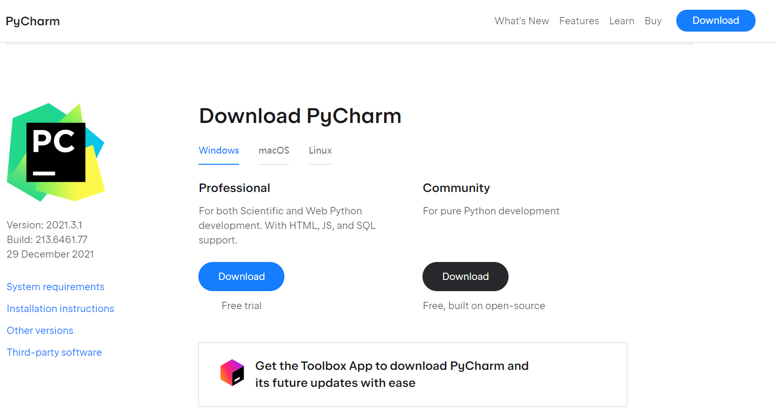 1、第一步:上PyCharm官网下载安装包