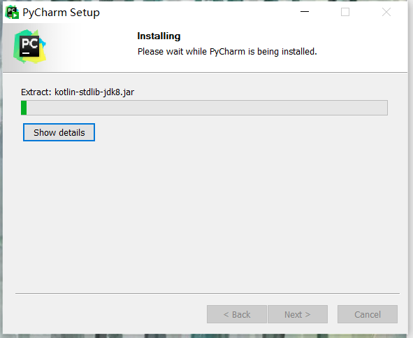 等它下载完成后,就是以下的界面(图片模糊,是因为我自己安装的时候到这个位置时忘记了截图,然后写这个的时候就去找了别的大佬们的一样的图片)这个“Run PyCharm”可以勾选也可不勾选,它的意思是:Finish之后要不要立刻运行PyCharm。