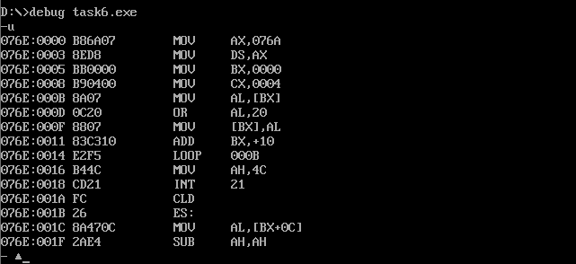 assume ds:data, cs:code, ss:stack code segment start: mov ax, data mov ds, ax mov ax, stack mov ss, ax mov sp, 20 mov ah, 4ch int 21h code ends data segment db 20 dup(0) data ends stack segment db 20 dup(0) stack ends end start