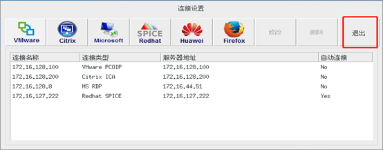 点击“保存”后,在“连接设置”界面中点击“退出”;