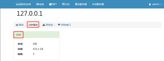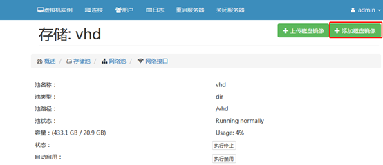 在“vhd”存储池中点击“添加磁盘镜像”;