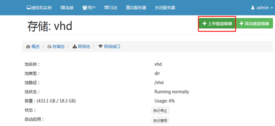 在“vhd”存储中,点击“上传磁盘镜像”;