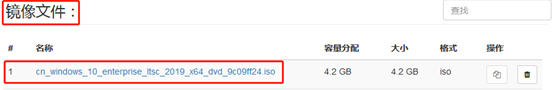 上传完成后在“镜像文件”下可看到已上传的iso镜像;下图所示: