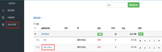 克隆完成后在“虚拟机管理”界面显示出克隆的虚拟机;