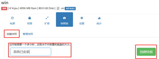虚拟机关机;点击“快照池”,点击“创建快照”,在方框中自定义输入快照名,再点击“创建快照”;