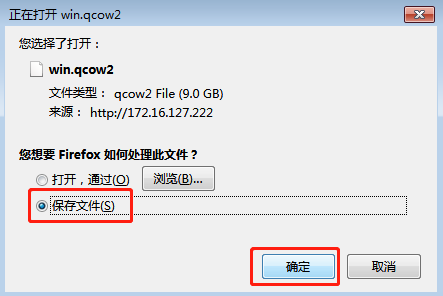 点击镜像文件名后在出现的窗口点击“保存文件”再点击“确定”将自动下载到本地电脑中;