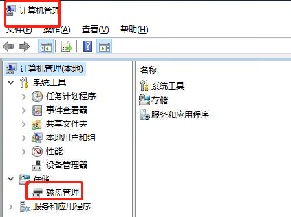 开启虚拟机,进到虚拟机系统,在“开始”中点击“Windows管理工具”打开“计算机管理”,点击“磁盘管理”;