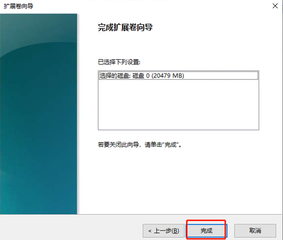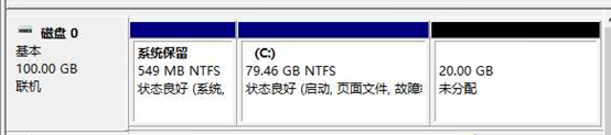 在“磁盘0”中显示出容量20GB未分配的盘;