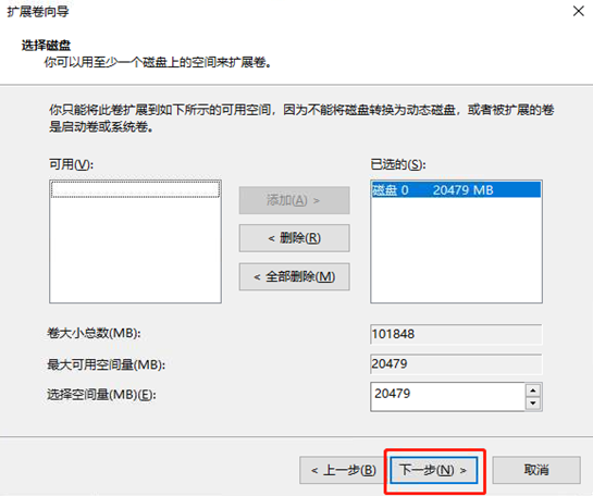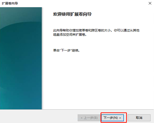 在“扩展卷向导”窗口中分别点击“下一步”;