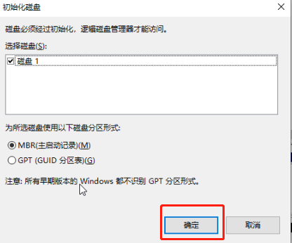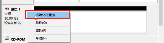 将磁盘进行“初始化”,右键点击磁盘,点击“初始化磁盘”;