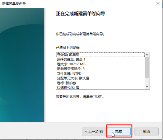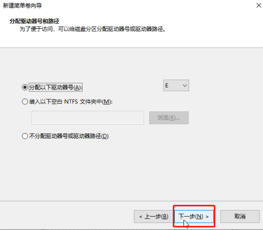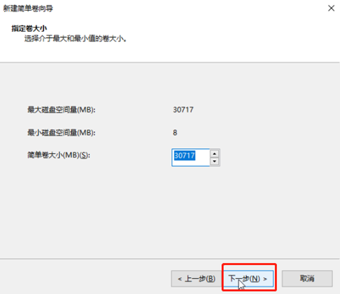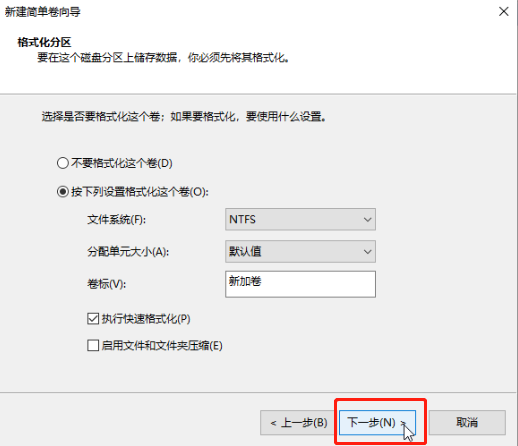 在新建简单卷过程中的提示窗口分别点击“下一步”;