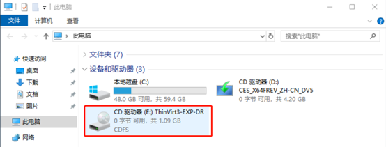 开启虚拟机,在“此电脑”中双击打开驱动器;