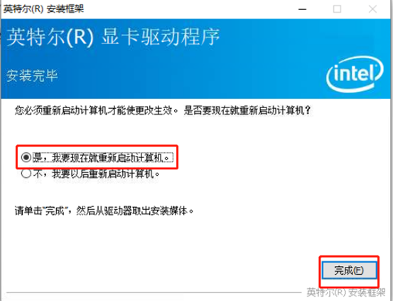 安装完毕窗口中选择重启计算机,再点击“完成”;