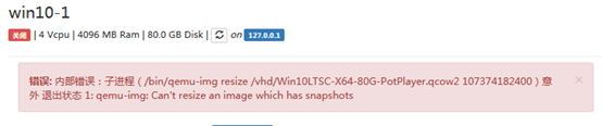 【注:当虚拟机有生成快照时,虚拟机无法扩容,将会出错,需把快照删除后再调整】