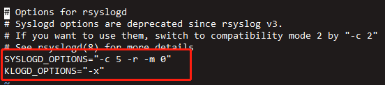 SYSLOGD_OPTIONS="-c 5 -r -m 0"
