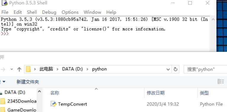 内容1、按照实验指导安装IDLE,尝试交互式运行python程序和批量运行python程序二种方式。