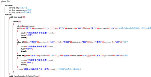 整体上,我们的代码思路大体上是一致的,都是围绕用户(老师)创建一个类,然后围绕这个类对其进行登陆、切换类型、输出题目等功能。