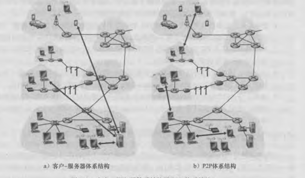 对每对通信进程,我们将这两个进程之一标识为客户,另一个为服务器。而对于P2P文件共享的某些应用中,一个进程既可以是客户又可以是服务器,为此,我们定义发起通信的进程被定义为客户,在会话开始时等待联系的进程为服务器。