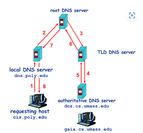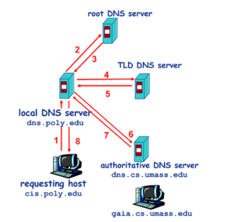 为了处理扩展性问题,DNS服务器采用层次式组织,并且分布在全世界范围内;大致来说,存在三种DNS服务器:根DNS服务器、顶级域(Top Level Domain, TLD)DNS服务器和权威DNS服务器。举例说明,假定一个 DNS 客户要获取主机名 www.amazon.com 的 IP 地址。客户首先与根服务器之一联系,它将返回顶级域名 com 的 TLD 服务器的 IP地址。 该客户与这些 TLD 服务器之一联系,它将为 amazon.com 返回权威服务器的 IP 地址。最后,客户与amazon.com 权威服务器之一联系,返回其 IP 地址。