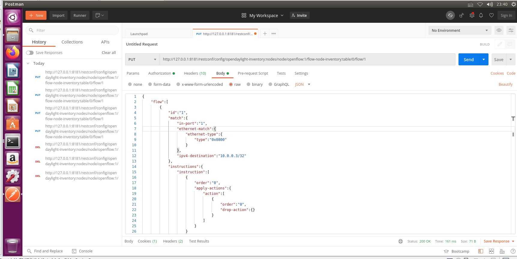 实验 6:OpenDaylight 实验——OpenDaylight 及 Postman 实现流表下发