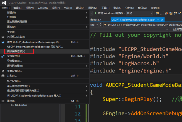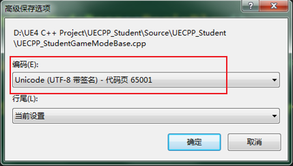 - 如果出现中文乱码的情况:高级保存选项 -> 将编码设置为UTF-8格式