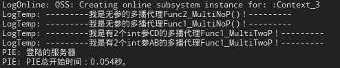 void AUECCharacter::Func1_MultiTwoP(int32 A, int32 B) { UE_LOG(LogTemp, Log, TEXT("---------我是有2个int参AB的多播代理Func1_MultiTwoP!---------")); }