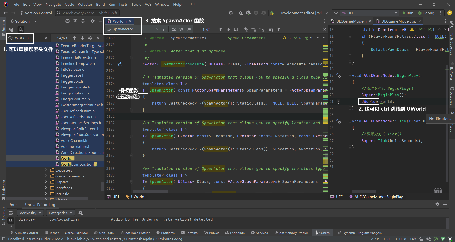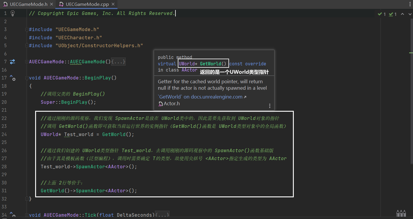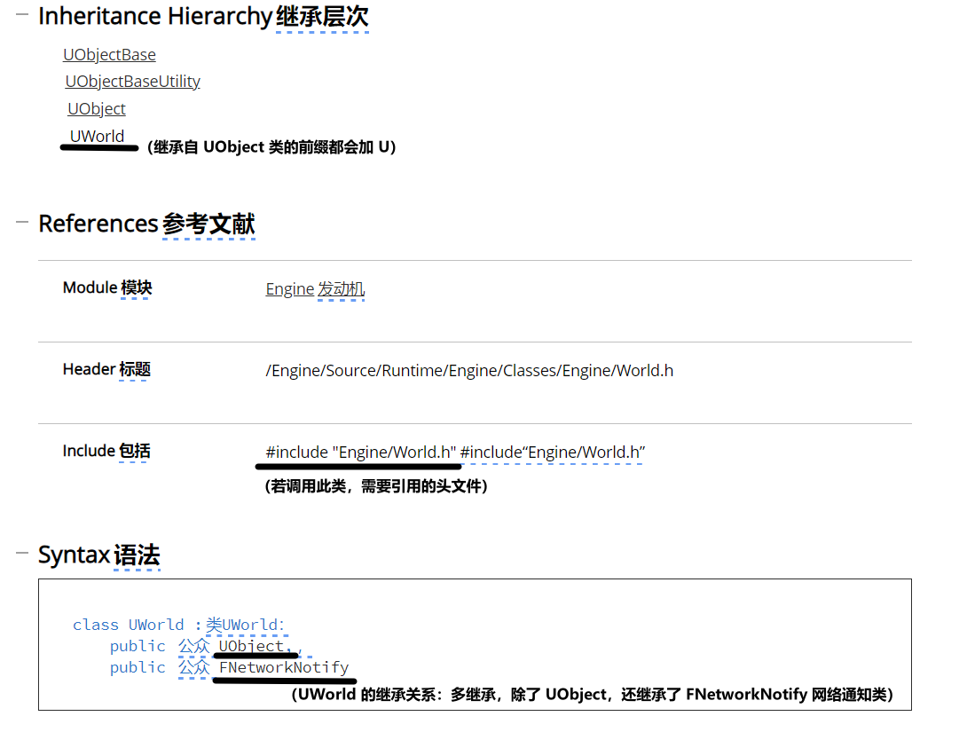 - 由于 UWorld 本身的头文件已经在父类中被包含,所以无需额外引入头文件 #include "Engine/UWorld.h"
