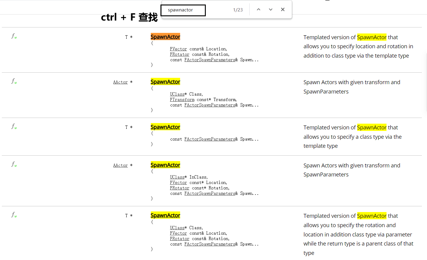 - 我们先从提供了默认值的 T* SpawnActor( const FActorSpawnParameters& SpawnParameters = FActorSpawnParameters() ) 基础版开始入门