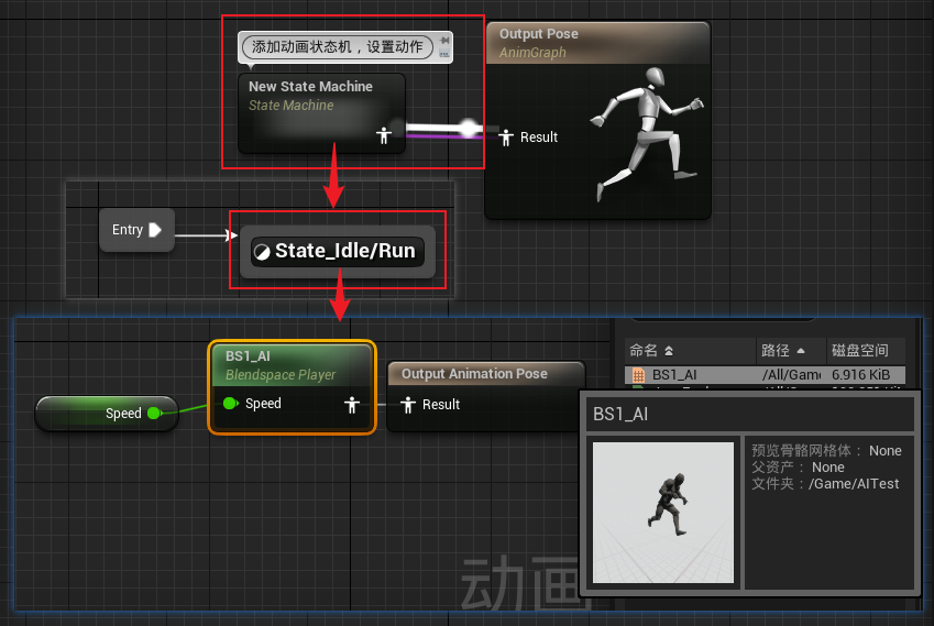 3. 将上面做好的AI动画蓝图添加到AI角色蓝图