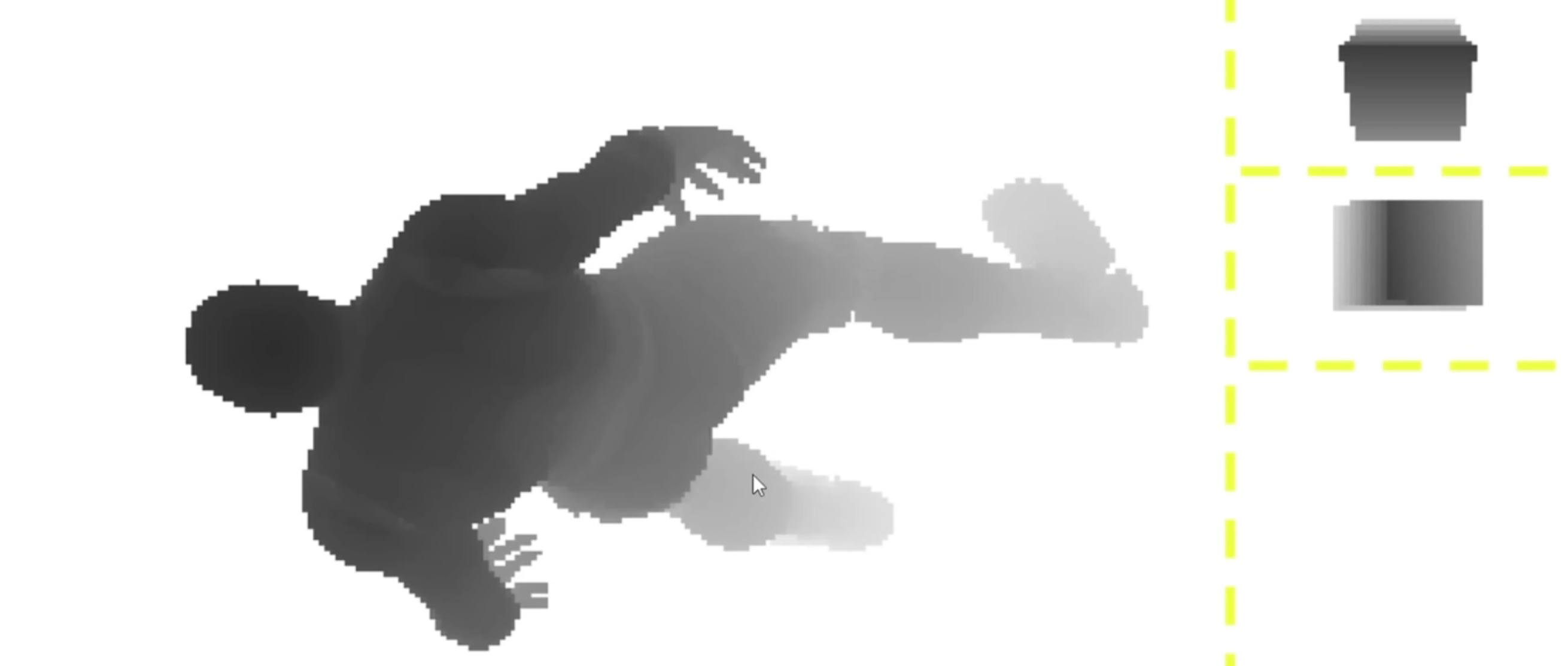 - 根据相机视角的深度图 + 光源视角的深度图,得到阴影 Mask(左图),并将其应用到渲染过程中,绘制出人物和阴影