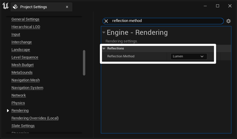 - 开启反射方式 Reflection Method:Lumen