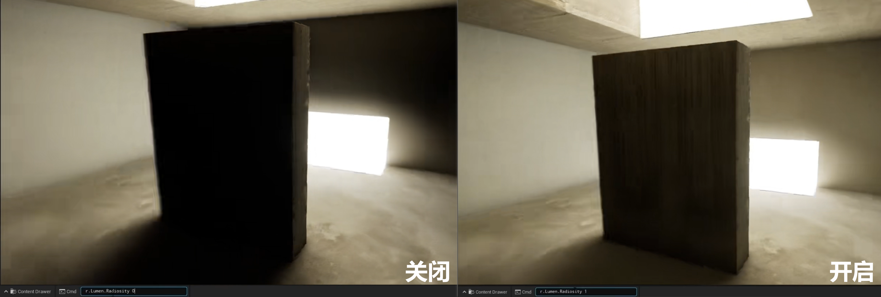 - UE4 中,主要通过直接光照来实现动态光照,很难计算间接光照(都是粗略估算或基于烘焙的全局光照),处理全局光照需要巨大的计算量,而实时全局光照的计算就更困难了