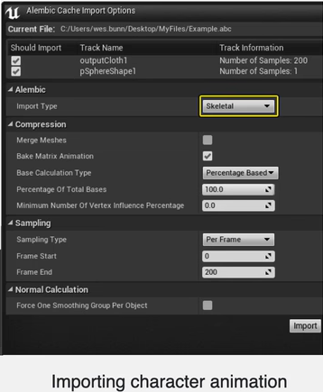 - 导入为 Skeletal Mesh