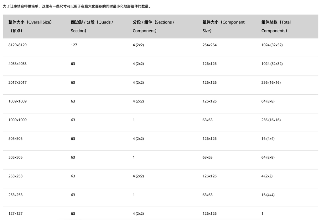 - 建议生成地形的尺寸参考