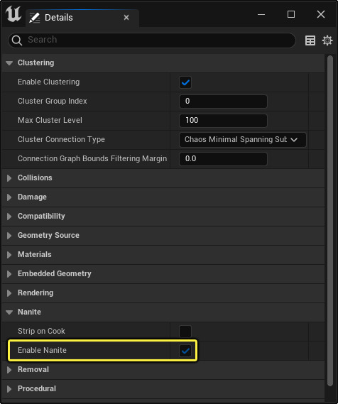 - 在 Static Mesh 静态网格体的细节面板上启用