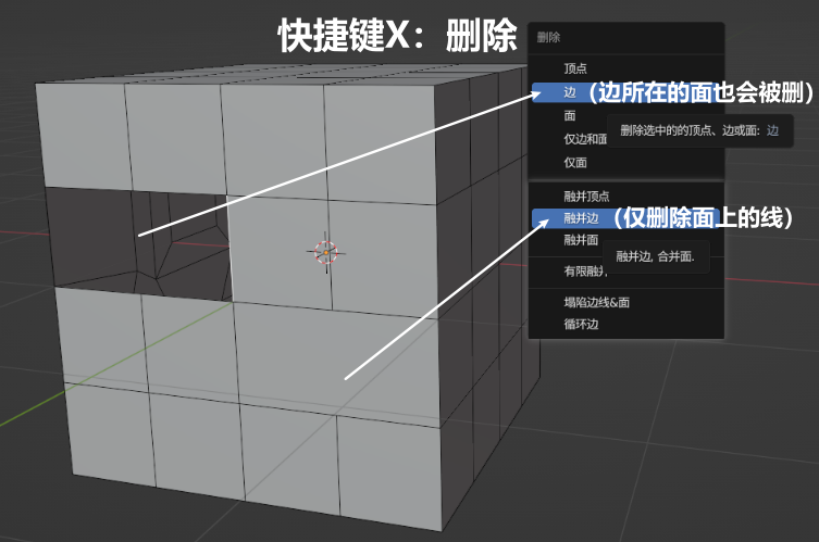- 5. 删除顶点:会把相邻的边、面一起删除