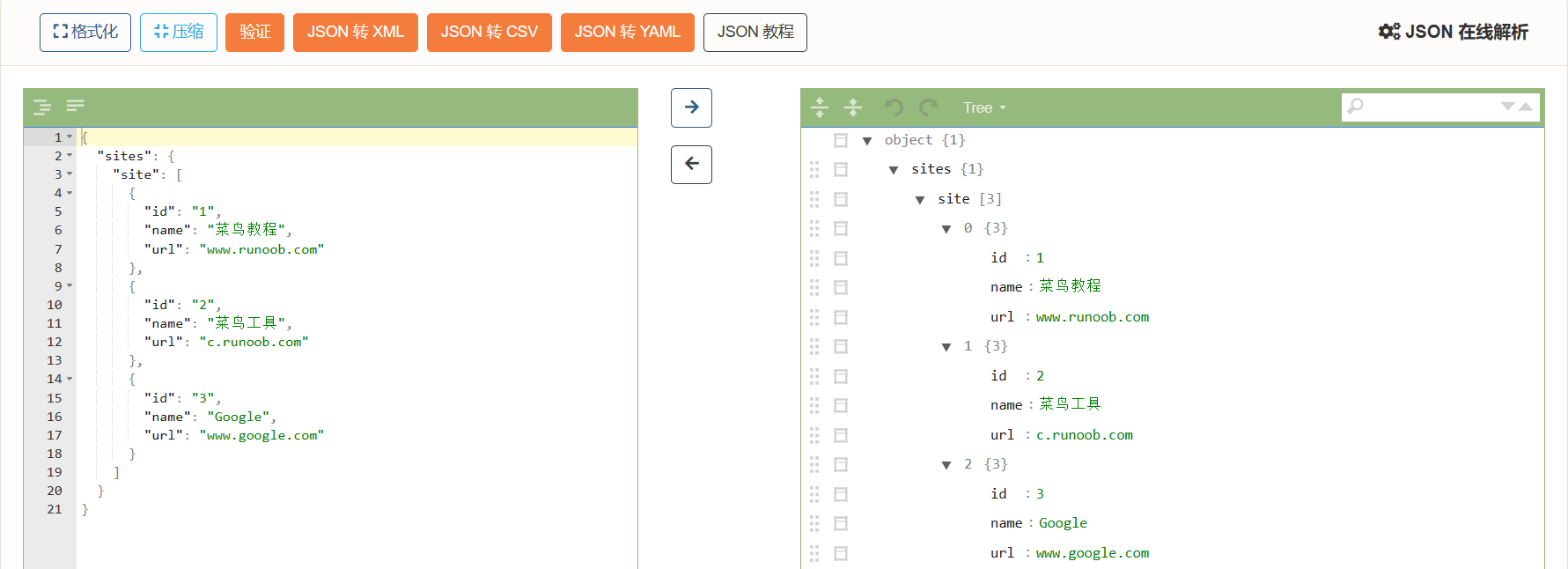 - 大括号表示一个 JSON 对象,中括号表示数组数据