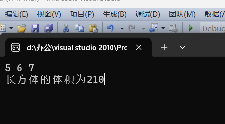 #include <stdio.h> int main(){ int a,b,c; scanf("%d %d %d",&a,&b,&c); printf("长方体的体积为%d",a*b*c); return 0; }
