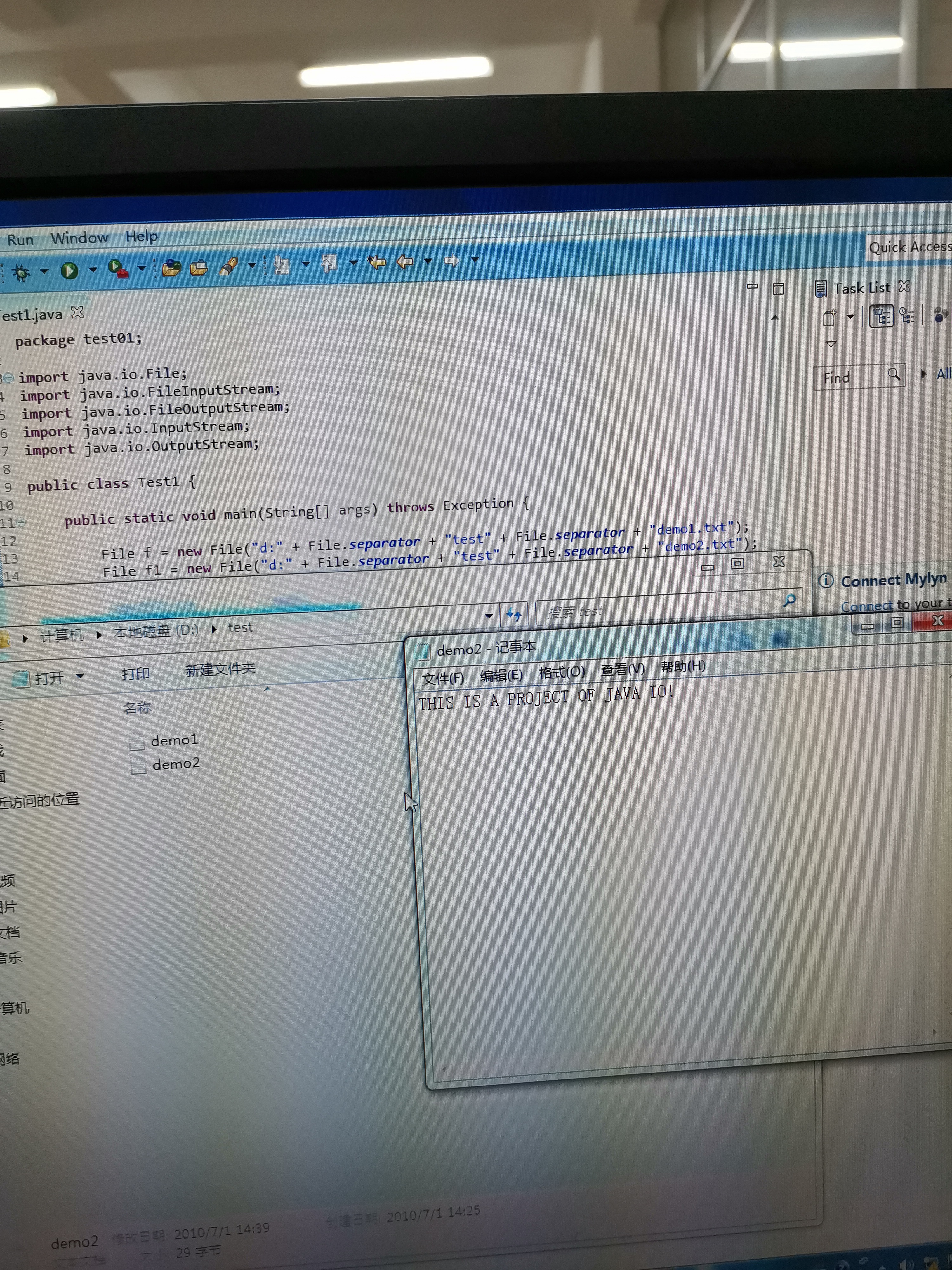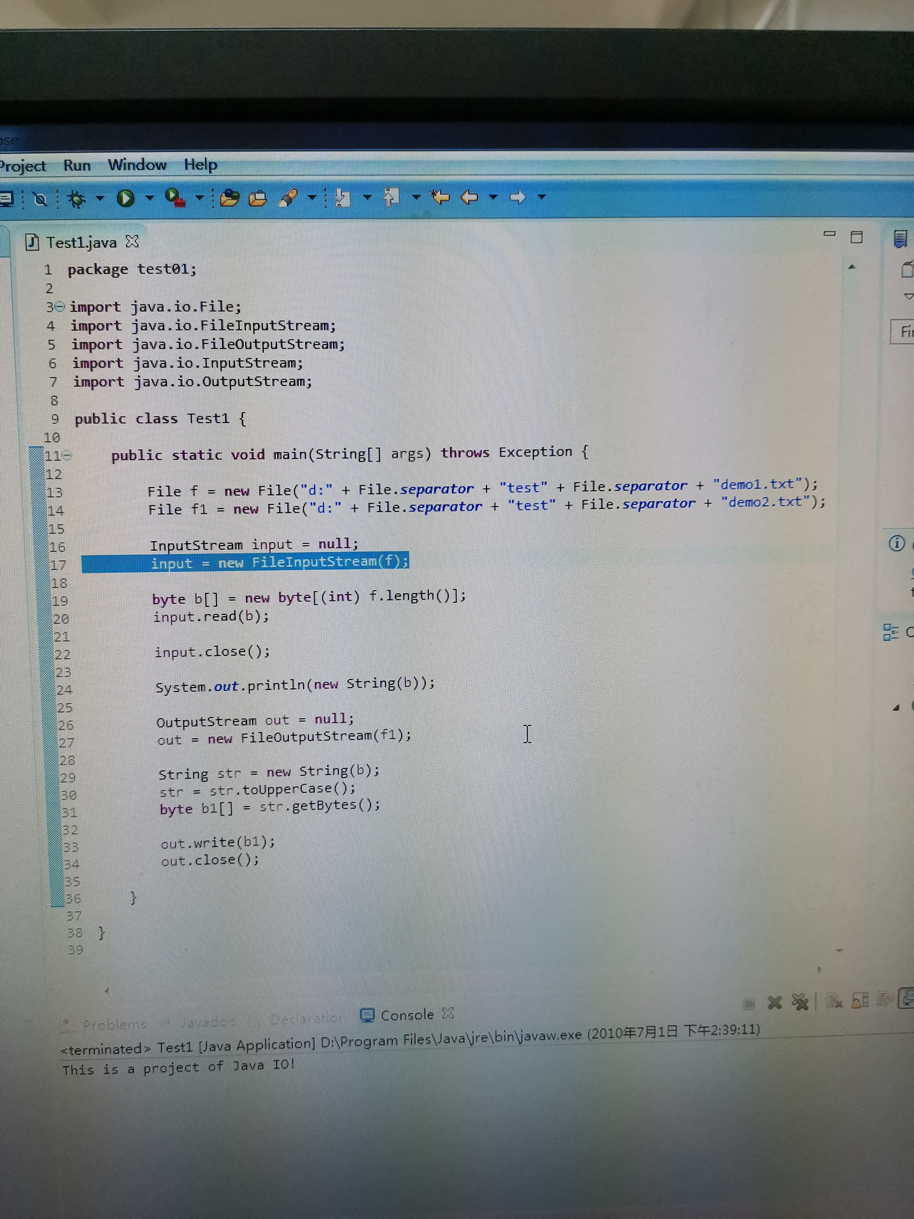2)因为FielOutputStream有异常,wire()方法也有异常,为了节省操作,可以在主方法抛出异常,不处理