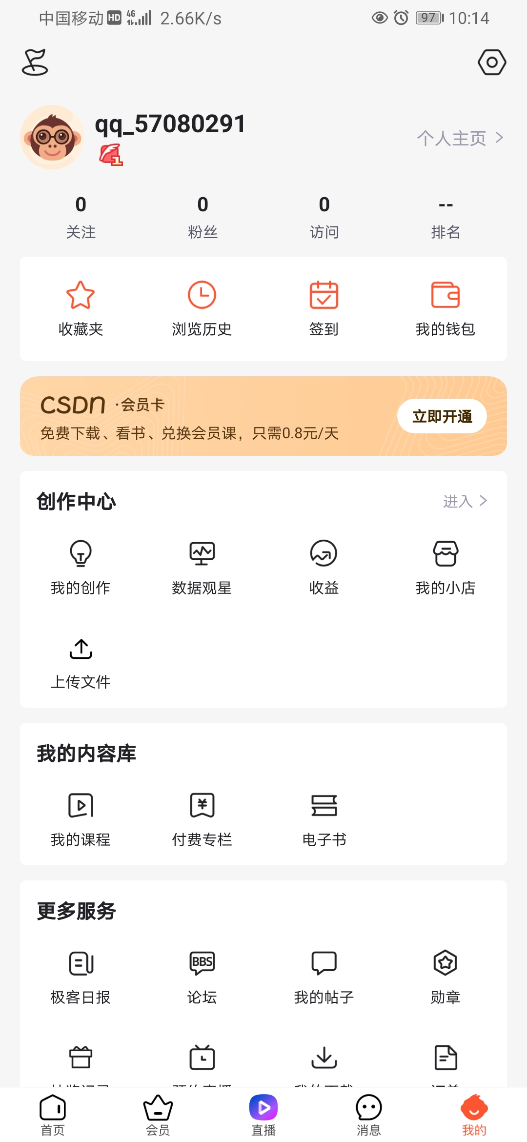 这是自己的一个个人主页,就像百度,uc,QQ浏览器一样,里面可以看到你关注了多少人,有多少粉丝,还可以收藏一些你喜欢的东西,
