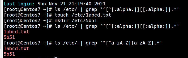 1、显示/etc目录下,以非字母开头,后面跟了一个字母以及其它任意长度任意字符的文件或目录