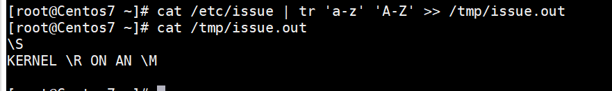 1、cat /etc/issue | tr 'a-z' 'A-Z' >> /tmp/issue.out