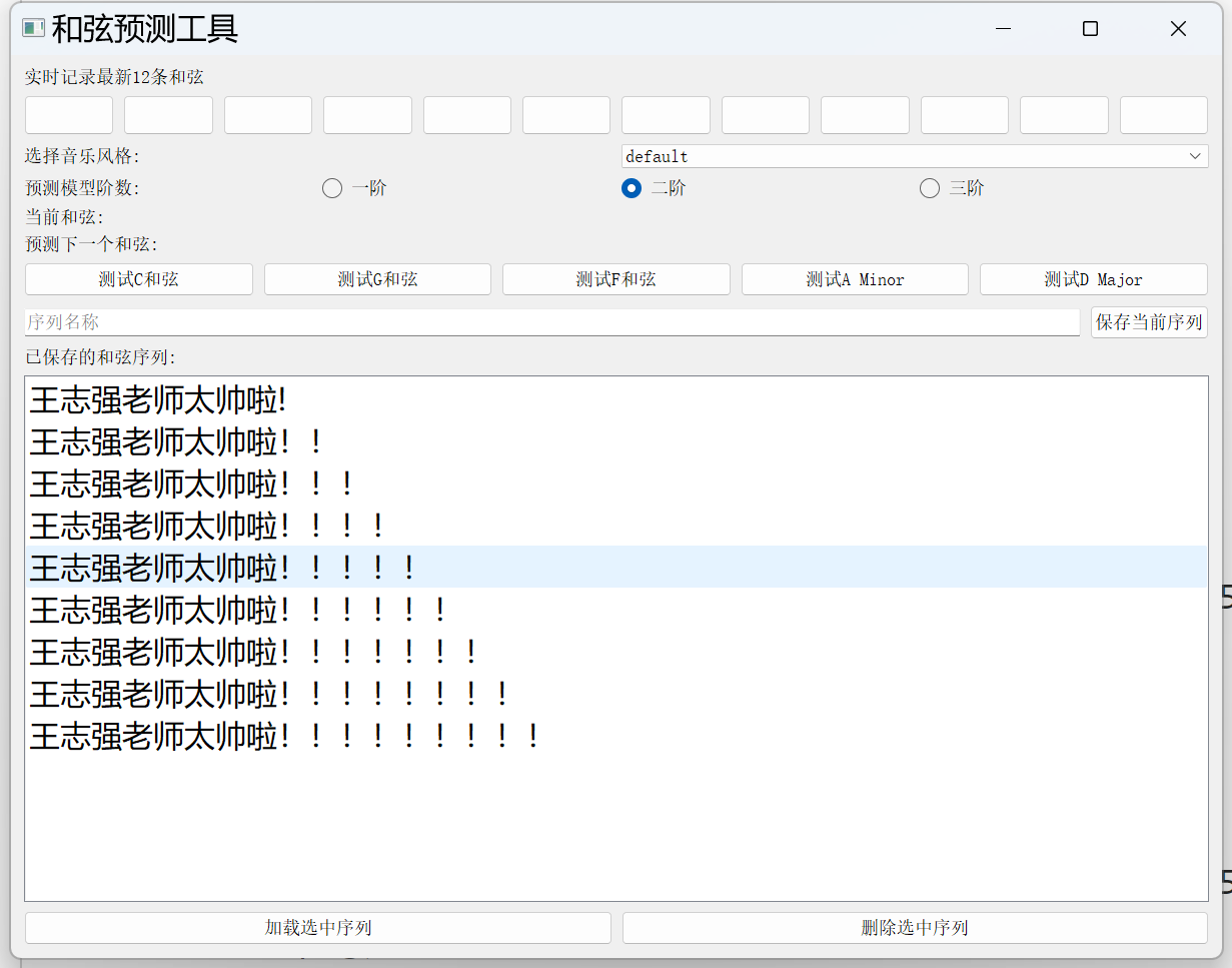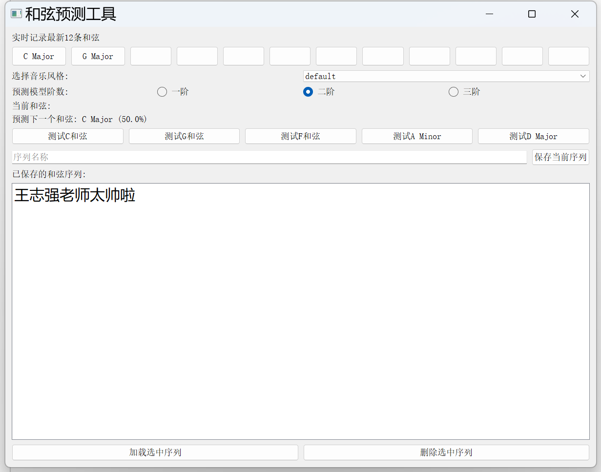 基于以上内容,我在我目前的代码基础上实现了一个较为完善的基于 PyQt 的虚拟键盘和弦预测工具开发的和弦预测系统。
