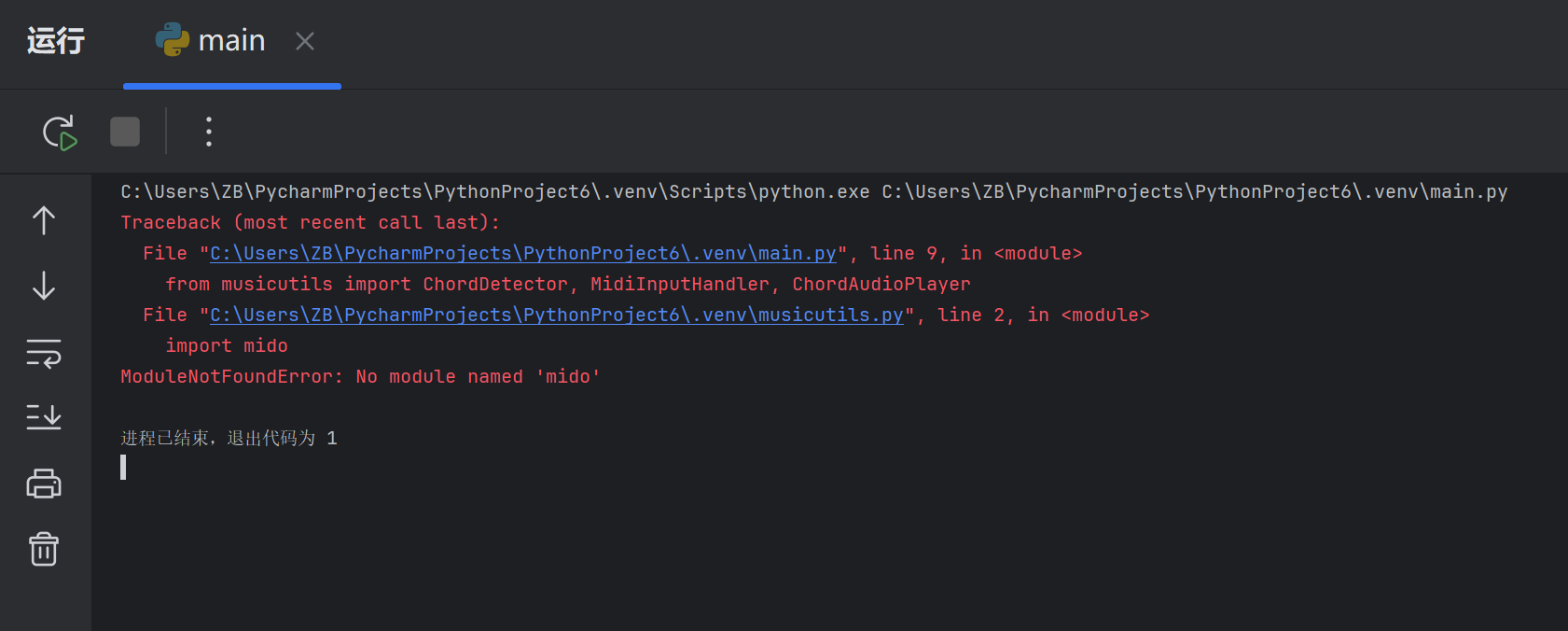 首先搭建环境就反复报错,在终端下载的PyQt5,告诉我需要更新终端库、复杂和弦计算music21,根目录文件创建路径也不对,主函数因为目录命名错误运行找不到datasets音乐类型数据集,代码也是反复报错。