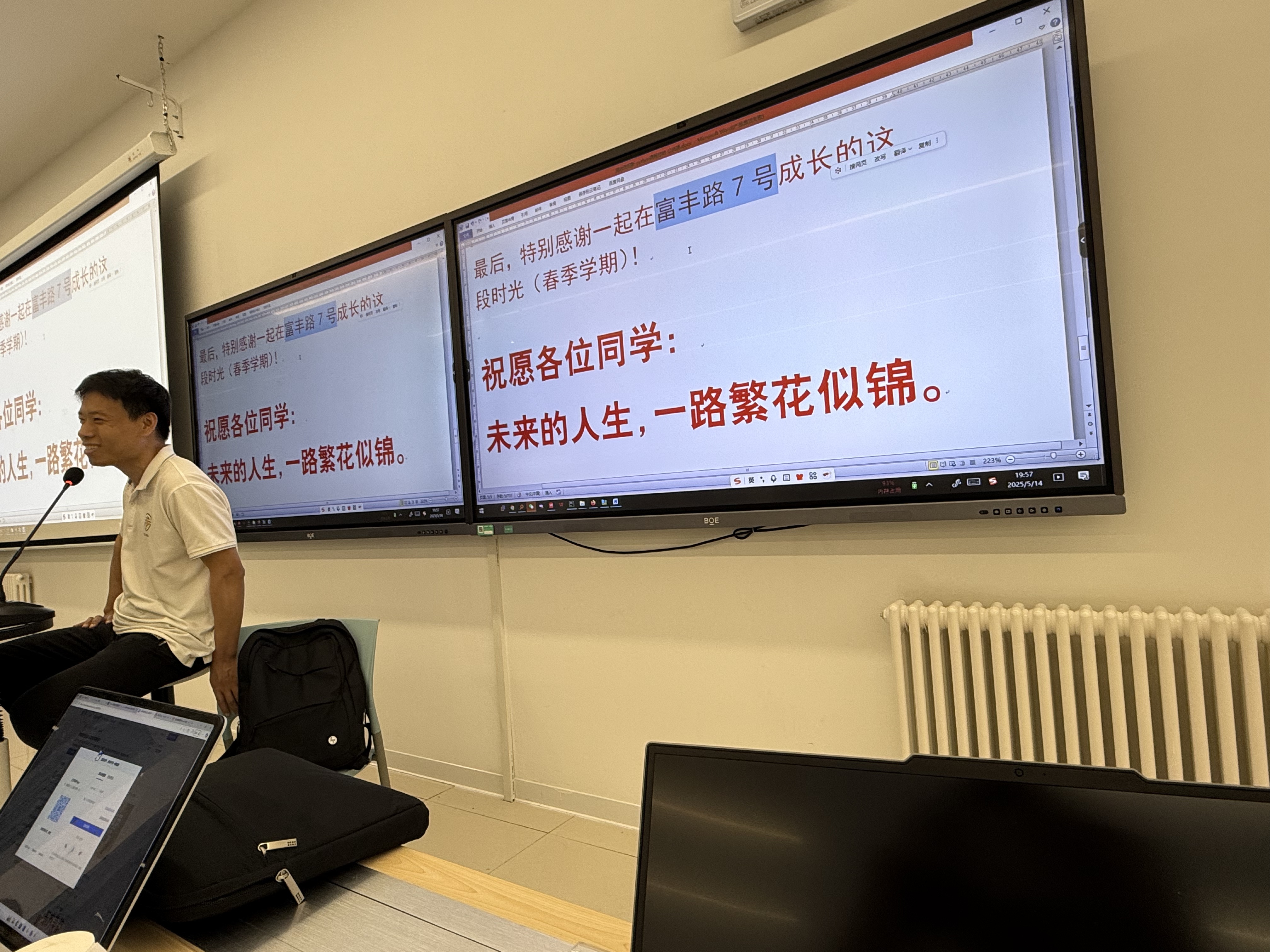 还记得最后一次课时,我坐在第一排,王老师的右手边,大屏幕的正前方听最后一次总结课。也非常有幸在抢答环节凭借手速和网速,抢到了课程回顾的问题回答。课程的节奏很快,从Python的课程简介、Python简介,基础语法,再到类与对象,再到文件操作、模块、网络爬虫。每次课程签到时候的连线九宫格往往其他课程简单的'L'型不一样,快速看着大屏幕按着连线推导怎么连这九个点。刚上课时回顾上一次课程的内容时,都会忘记上一次课的知识点,点名提问时候快速的翻书、翻笔记复习。记忆深刻的还有王老师课堂的举例,学类时“王凯”用数值对打“曾楷”,做石头剪刀布实验时逗我们说输了就挂科。王凯实验写的不好直接挂科,哈哈哈哈,轻松愉悦的氛围消除了课程的枯燥,让每一次周三的晚课都充满热情。总结课上,王老师PPT的那句“那些看似波澜不惊的日复一日,终将在某一天,让我们看到坚持的意义。” 没错,做项目时熬夜查资料,泡图书馆问AI学习马尔科夫链算法,学习LSTM输入门、遗忘门和输出门信息控制处理中长序列依赖,学习Transfomer模型嵌入层、多头自注意力层、前馈神经网络层和输出层Transformer 网络结构,用softmax函数输出下一个和弦的概率分布结果。做程序时搭建不明白环境、代码报错,程序能运行打开就闪退。就是这些波澜不惊的日复一日,让我在端午节最后一天的晚上成功运行程序,看到坚持的意义。我觉得这句话不止适用于短期,对未来的我们更是使用,那些看似波澜不惊的日复一日,终将在某一天,让我们看到坚持的意义。