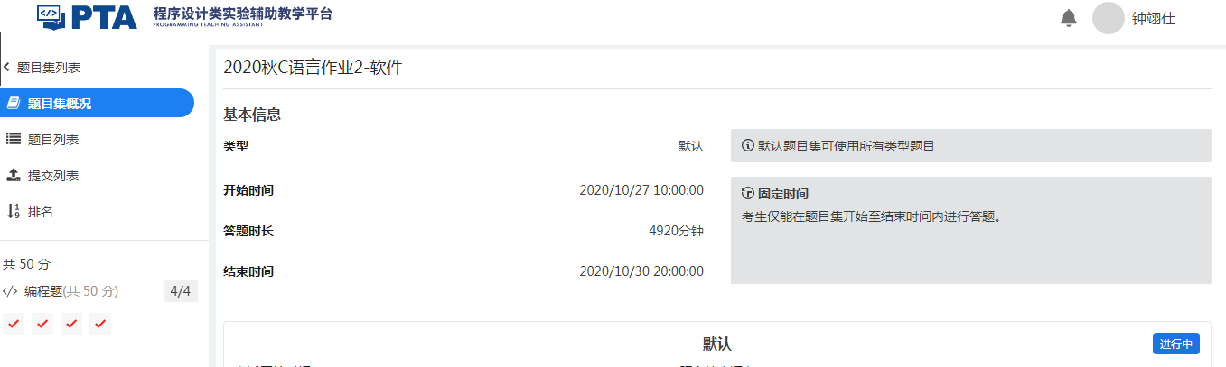 2.2 请完成PTA作业:2020秋C语言作业2。在博客作业中贴出完成图片,图片要求存在自己的名字标识。(2分