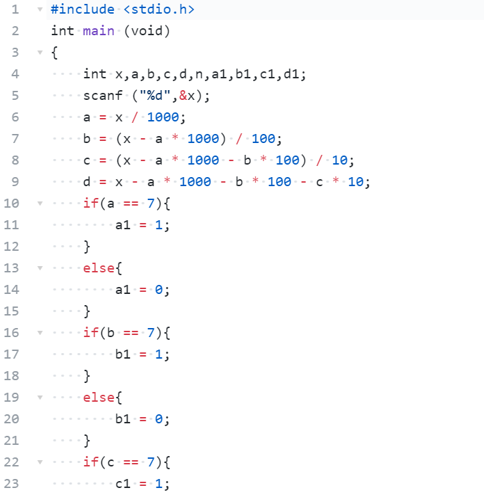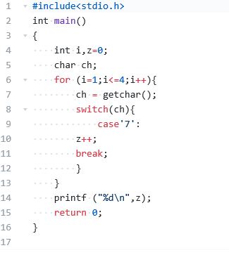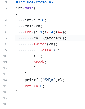 从键盘读入一个4位数的整数,求该数中有多少位是7。