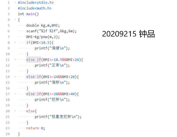 这个题目的分支结构很容易出错,而且错了还看的人眼花缭乱,不知道错哪了,检查几次发现错了符号,还有一些语法,改正后提交总算正确了。