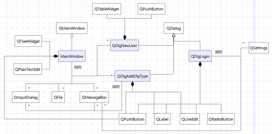 软件主体是MainWindow类和QDlgLogin类,这两个类分别由许多构件类组成,同时又要调用其他的许多功能类,需要根据代码的编写具体确定。