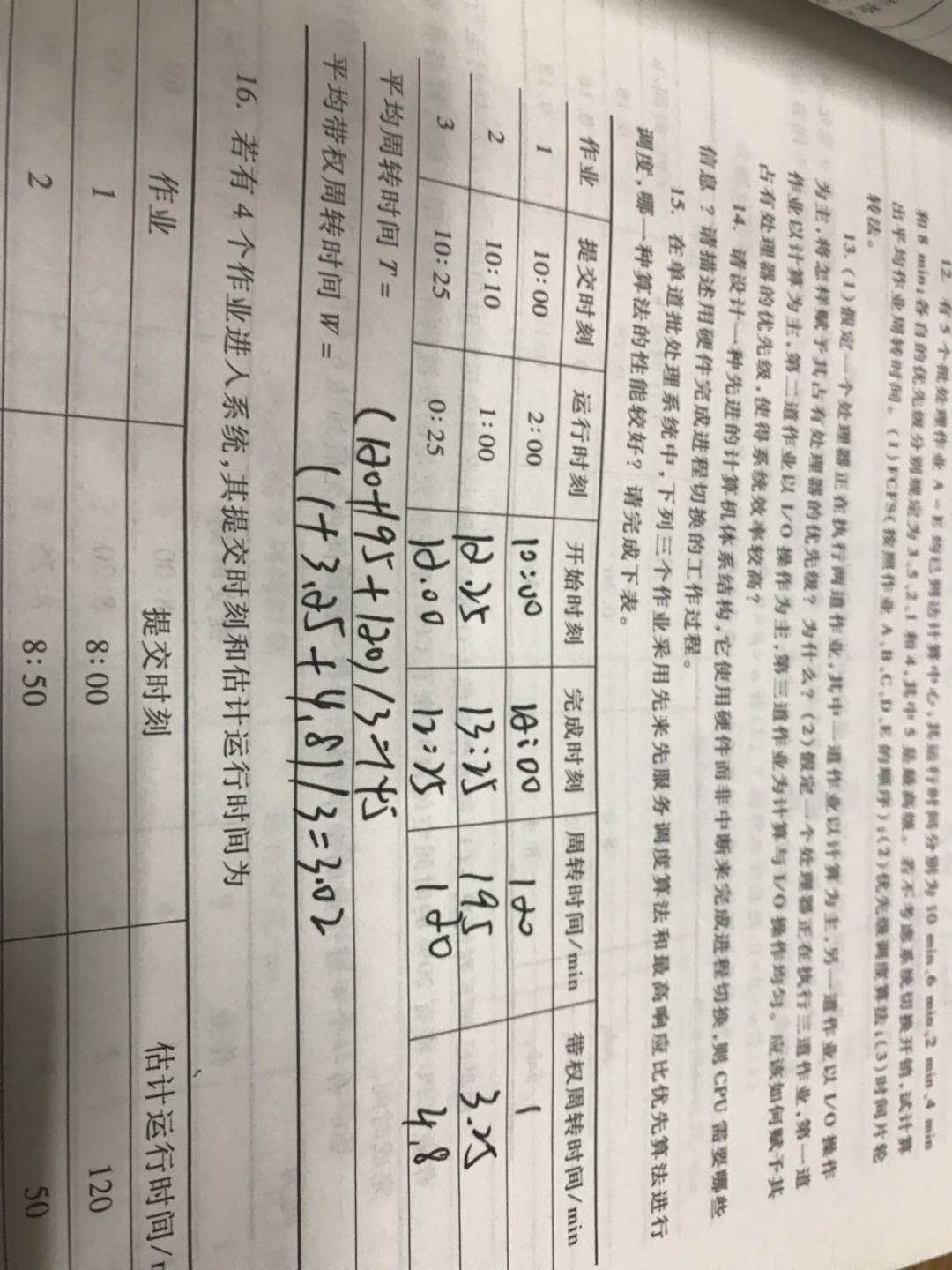 (2)最短作业优先算法:这是一个非剥夺式调度算法。此算法的资源利用率不高,吞吐率和周转率比FCFS高些,响应时间较快,但是并不是很公平,适用于短作业进程。优缺点:降低作业的平均等待时间,提高系统吞吐量。对长作业不利;未考虑作业的紧迫程度;对进程估计执行时间难以预测。缺点是:1.要预先知道作业所需的CPU运行时间,很难精确估算。2.忽视作业等待时间,由于系统不断接收新作业,作业调度程序总是选择计算时间短的作业投入运行,因此进入系统时间早但计算时间长的作业的等待时间会过长,出现饥饿现象。3.尽管能克服对长作业的偏爱,但由于缺少剥夺机制,对于分时、实时处理仍不理想。